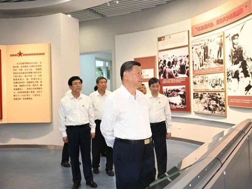10月15日下午,習近平總書記在福建省漳州市東山縣,考察了谷文昌紀念館,了解當?shù)貍鞒屑t色基因等情況。