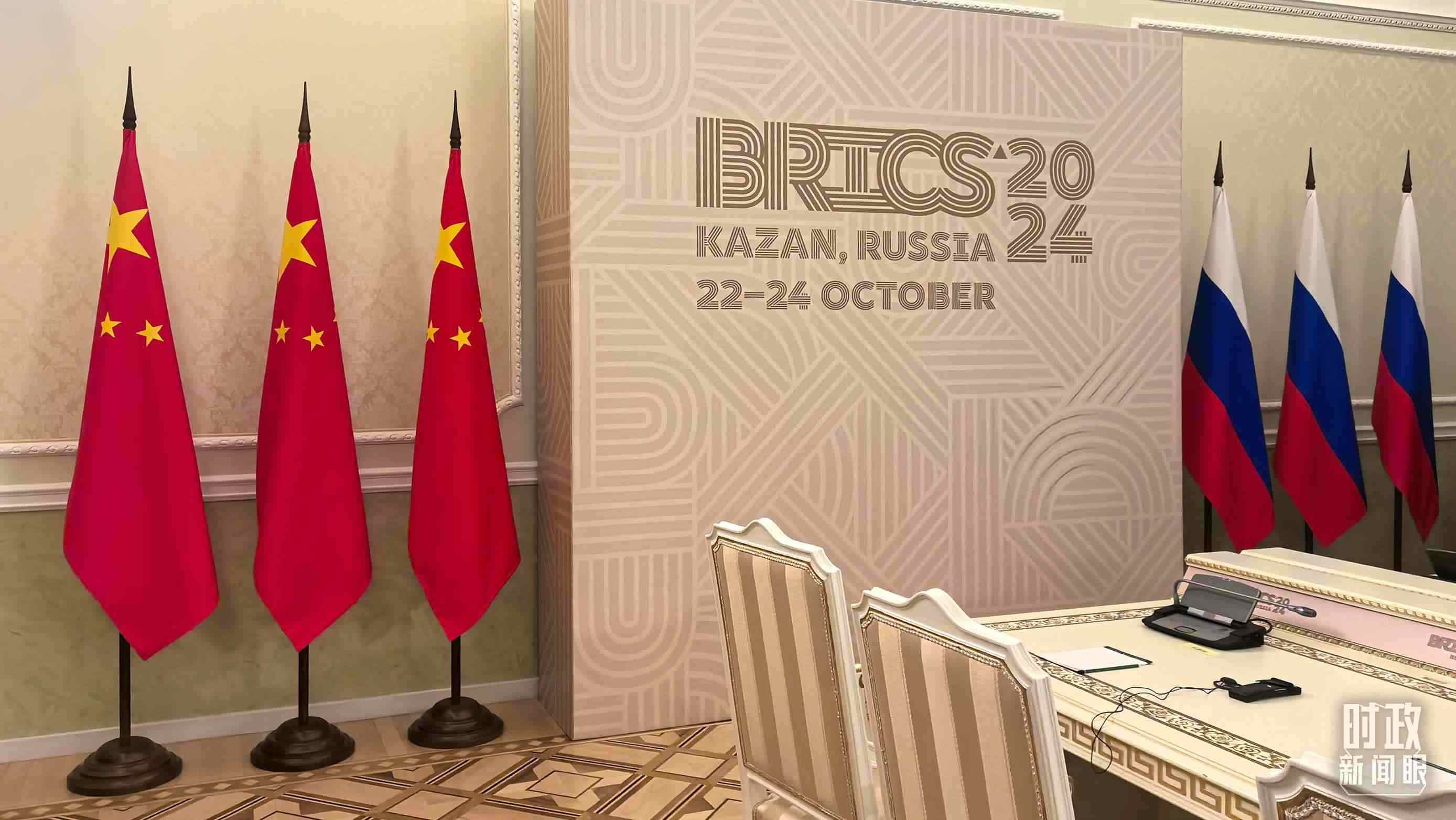 △ 中俄兩國(guó)元首喀山會(huì)晤開(kāi)始前的現(xiàn)場(chǎng)。(總臺(tái)央視記者程鋮拍攝)