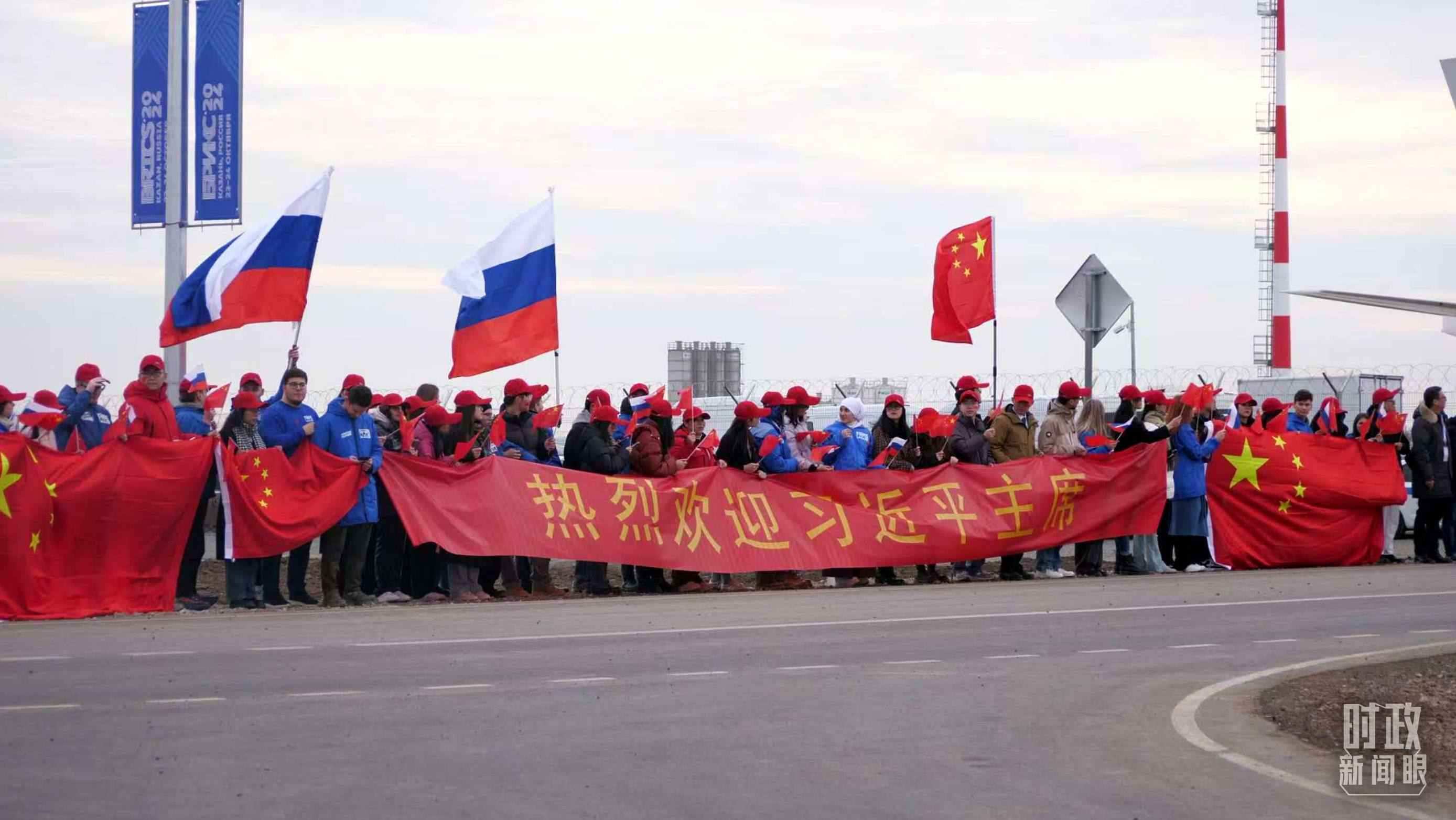 △ 俄羅斯喀山各界人士揮舞中俄兩國(guó)國(guó)旗,歡迎習(xí)主席到訪。(總臺(tái)記者蔣泓橋拍攝)