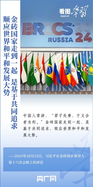 當地時間10月23日,國家主席習近平在俄羅斯喀山出席金磚國家領導人第十六次會晤并發(fā)表重要講話。習主席深刻闡述推動“大金磚合作”高質量發(fā)展的中國主張,就金磚大家庭發(fā)展合作提出五點務實舉措,表達了中方愿同金磚各國一道,攜手更多“全球南方”國家共同推動構建人類命運共同體的真誠愿望。一起來學習!