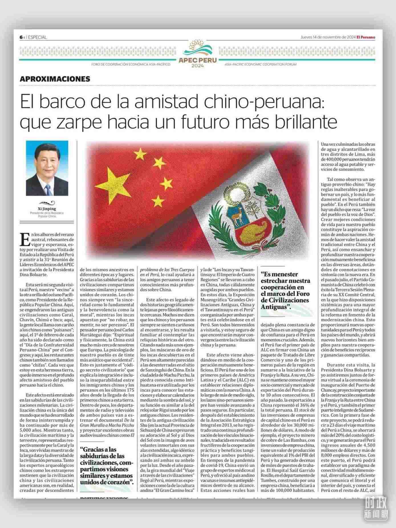 △習(xí)主席在《秘魯人報》發(fā)表題為《讓中秘友好之船揚帆遠航》的署名文章。(總臺國廣記者吳倩)