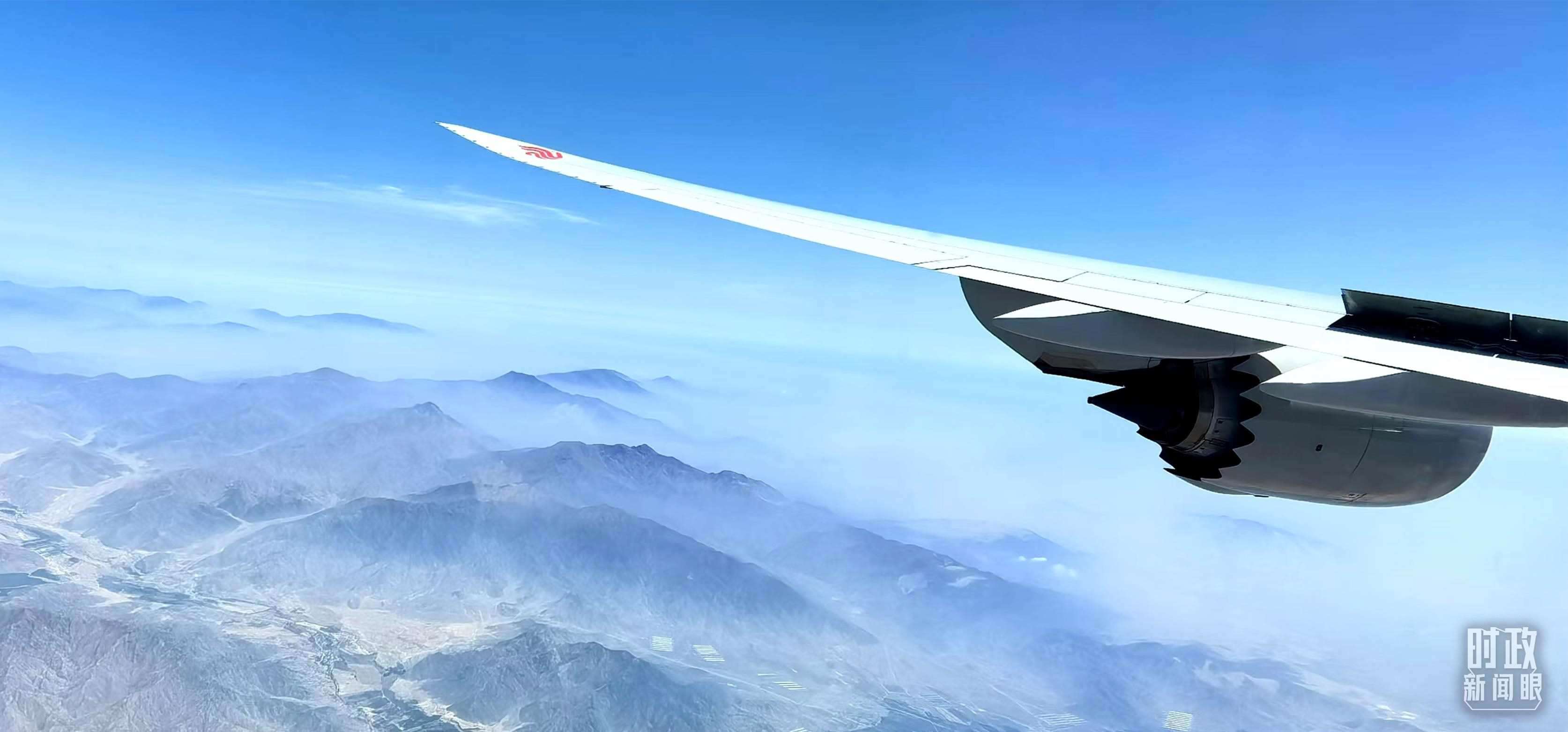 △習(xí)主席乘坐的專機即將抵達利馬。(總臺央視記者李錚拍攝)