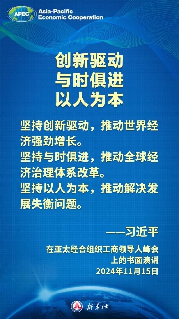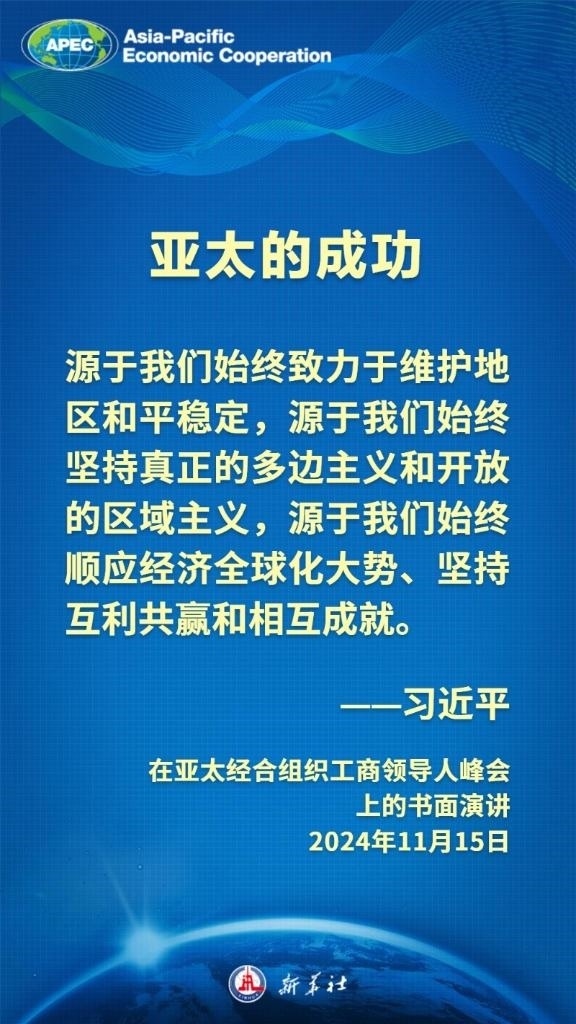 當?shù)貢r間11月15日上午,國家主席習近平向在利馬舉行的亞太經合組織工商領導人峰會發(fā)表題為《把握時代大勢 共促世界繁榮》的書面演講,這樣闡述亞太合作——