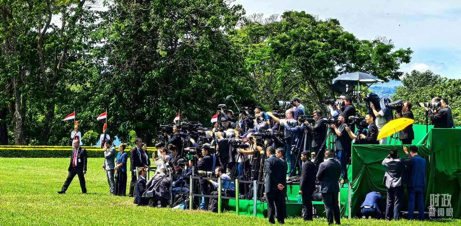 △歡迎儀式現(xiàn)場的媒體記者。(總臺(tái)央視記者周志國拍攝)