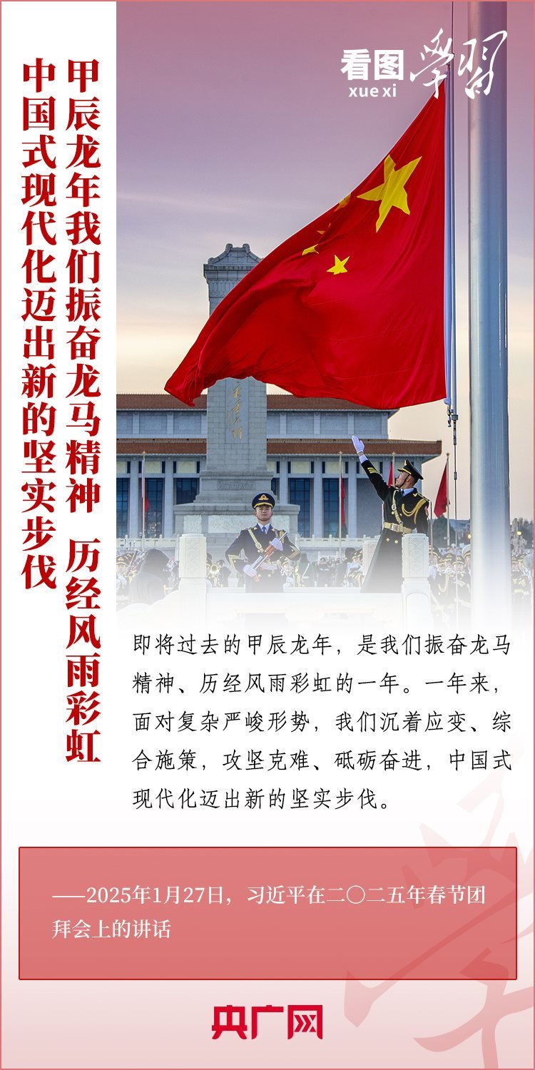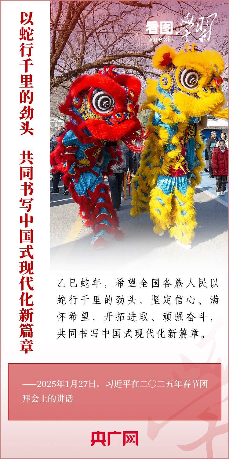 1月27日,中共中央、國務(wù)院在北京舉行春節(jié)團(tuán)拜會,習(xí)近平總書記發(fā)表熱情洋溢的講話,向全國各族人民、港澳臺同胞、海外僑胞拜年并致以新春祝福??倳浽谥v話中深情回顧過去一年中國式現(xiàn)代化取得很不平凡的發(fā)展歷程,“希望全國各族人民以蛇行千里的勁頭,堅定信心、滿懷希望,開拓進(jìn)取、頑強(qiáng)奮斗,共同書寫中國式現(xiàn)代化新篇章?!币黄饋韺W(xué)習(xí)!