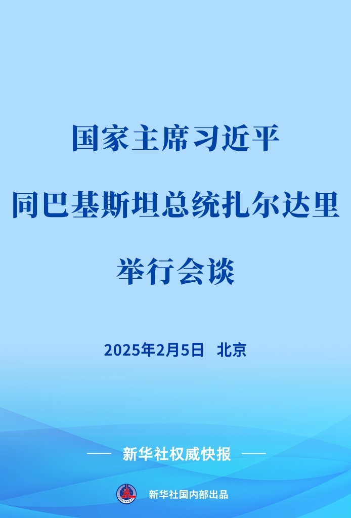 2月5日下午,國(guó)家主席習(xí)近平在北京人民大會(huì)堂同來(lái)華進(jìn)行國(guó)事訪問(wèn)的巴基斯坦總統(tǒng)扎爾達(dá)里舉行會(huì)談。
