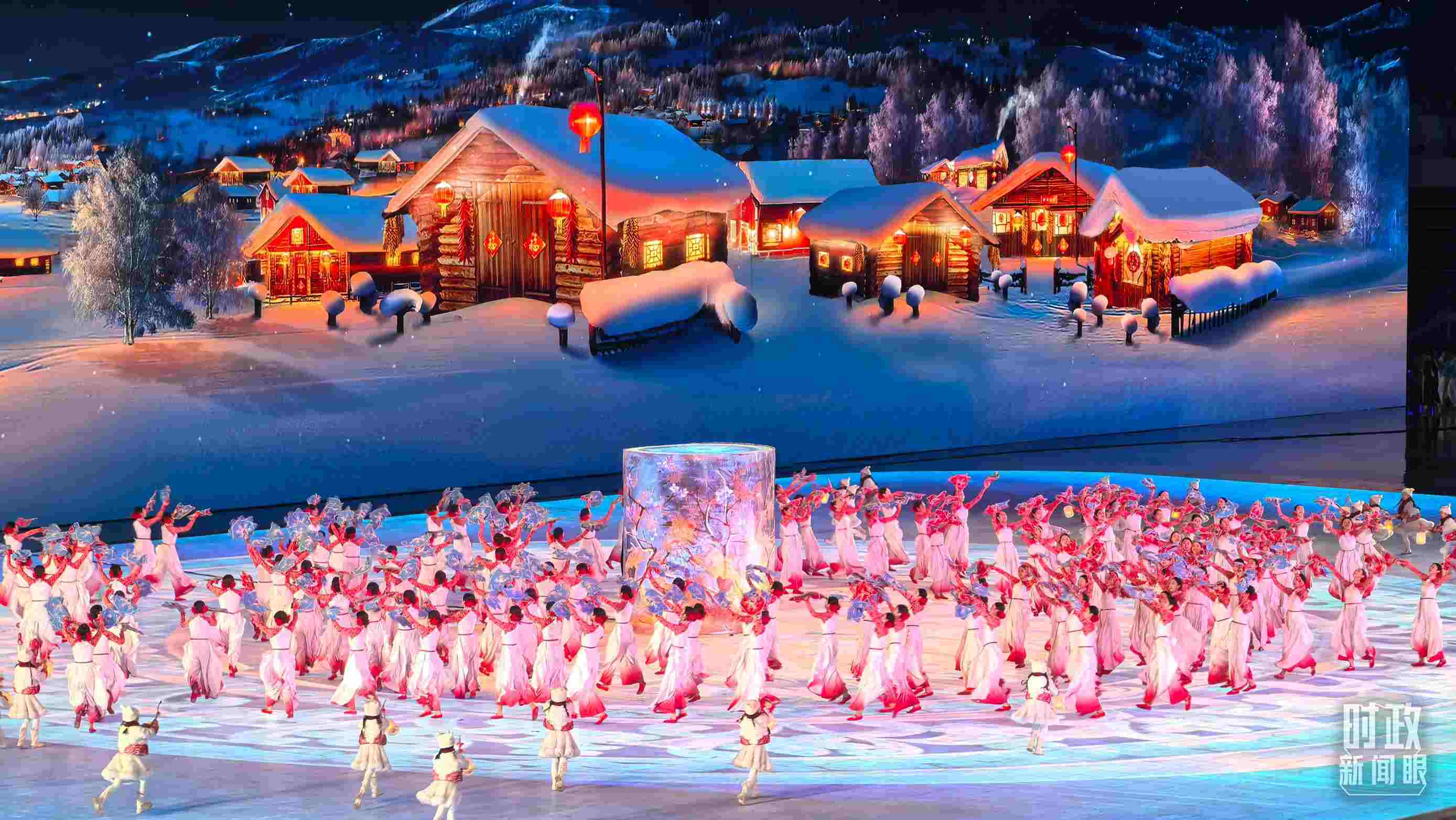 開幕式以“哈爾濱、中國(guó)、亞洲”的地域遞進(jìn)層次展開。一盞冰燈映照新春,講述從啟夢(mèng)、追夢(mèng)到圓夢(mèng)的冰雪夢(mèng)想。從“冰晶藍(lán)”到“中國(guó)紅”,旋轉(zhuǎn)的“冰凌花”盡顯喜迎八方賓朋的熱情。