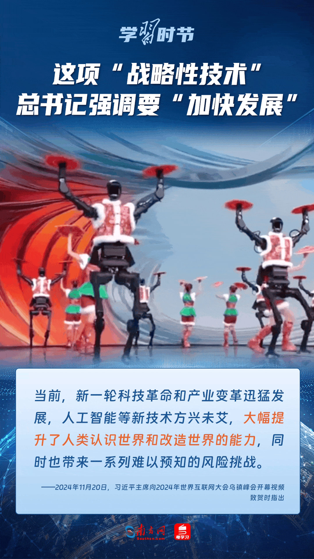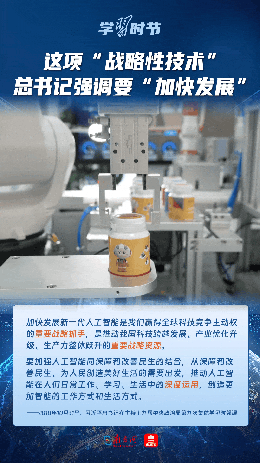 人工智能是引領(lǐng)科技革命和產(chǎn)業(yè)變革的戰(zhàn)略性技術(shù)。黨的十八大以來,習近平總書記把創(chuàng)新擺在國家發(fā)展全局的核心位置,高度重視人工智能發(fā)展,多次談及這項“戰(zhàn)略性技術(shù)”,強調(diào)要“加快發(fā)展”,為人工智能賦能千行百業(yè)指明方向。讓我們一起來學習總書記關(guān)于人工智能的重要論述!