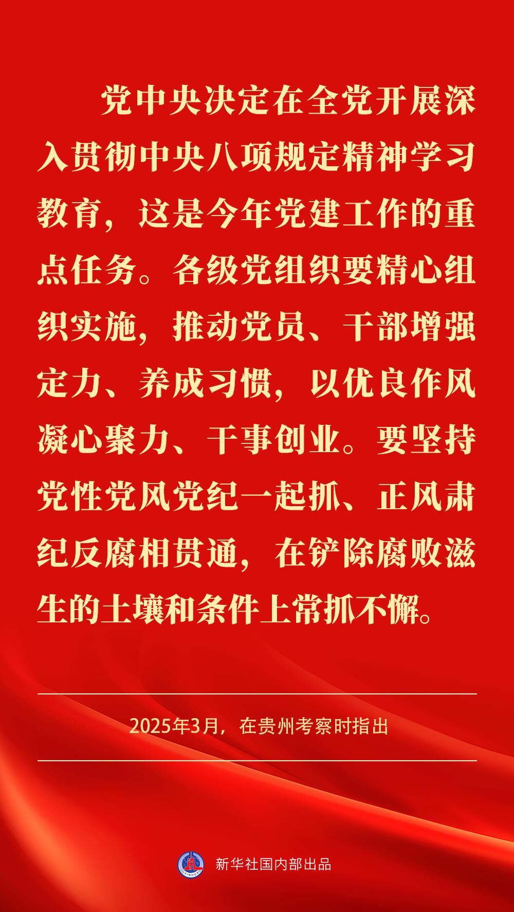 中央黨的建設(shè)工作領(lǐng)導(dǎo)小組近日召開會(huì)議指出,黨中央決定,自2025年全國(guó)兩會(huì)后至7月在全黨開展深入貫徹中央八項(xiàng)規(guī)定精神學(xué)習(xí)教育。