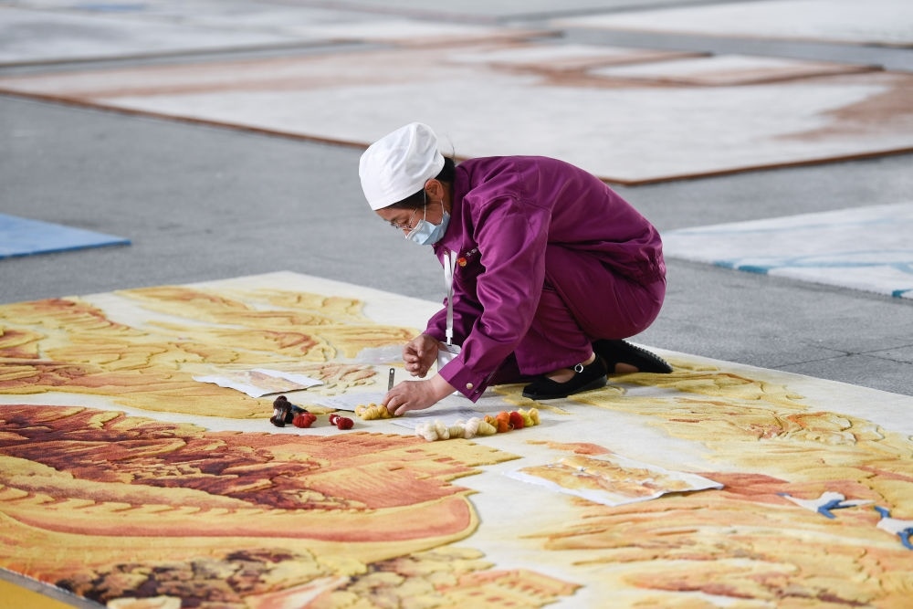 2019年,經(jīng)人介紹,張淑菊到圣源地毯工作。剛來(lái)的時(shí)候,她心里沒(méi)底:“以前干的凈是些粗活,咋練這‘繡花’功夫?”但經(jīng)過(guò)公司的技能培訓(xùn),她很快熟悉了這項(xiàng)工作,一干就是6年多。如今,她每月工資有5000多元。“買房了,女兒也上大學(xué)了?!睆埵缇照f(shuō),這些都是來(lái)這里工作后的變化,“等交房了,我要在客廳擺一張自己制作的藏毯”。