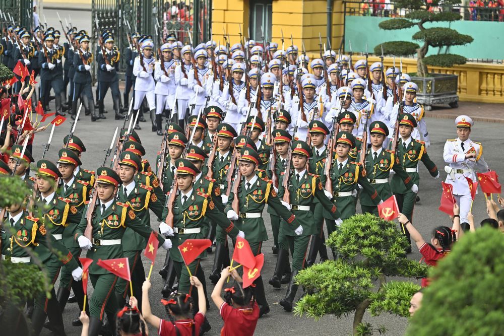 當(dāng)?shù)貢r間4月14日,中共中央總書記、國家主席習(xí)近平在河內(nèi)出席越共中央總書記蘇林舉行的歡迎儀式。