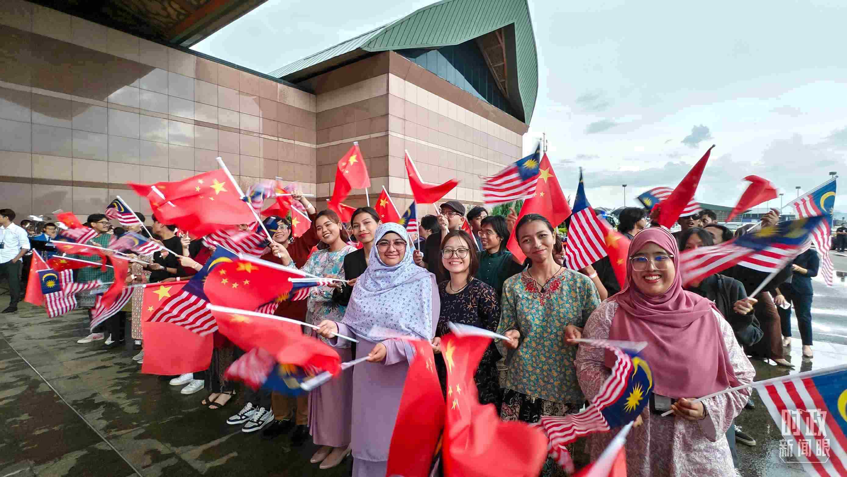 △在機場迎接習(xí)近平主席的馬來西亞當(dāng)?shù)孛癖?。(總臺央視記者韓銳拍攝)