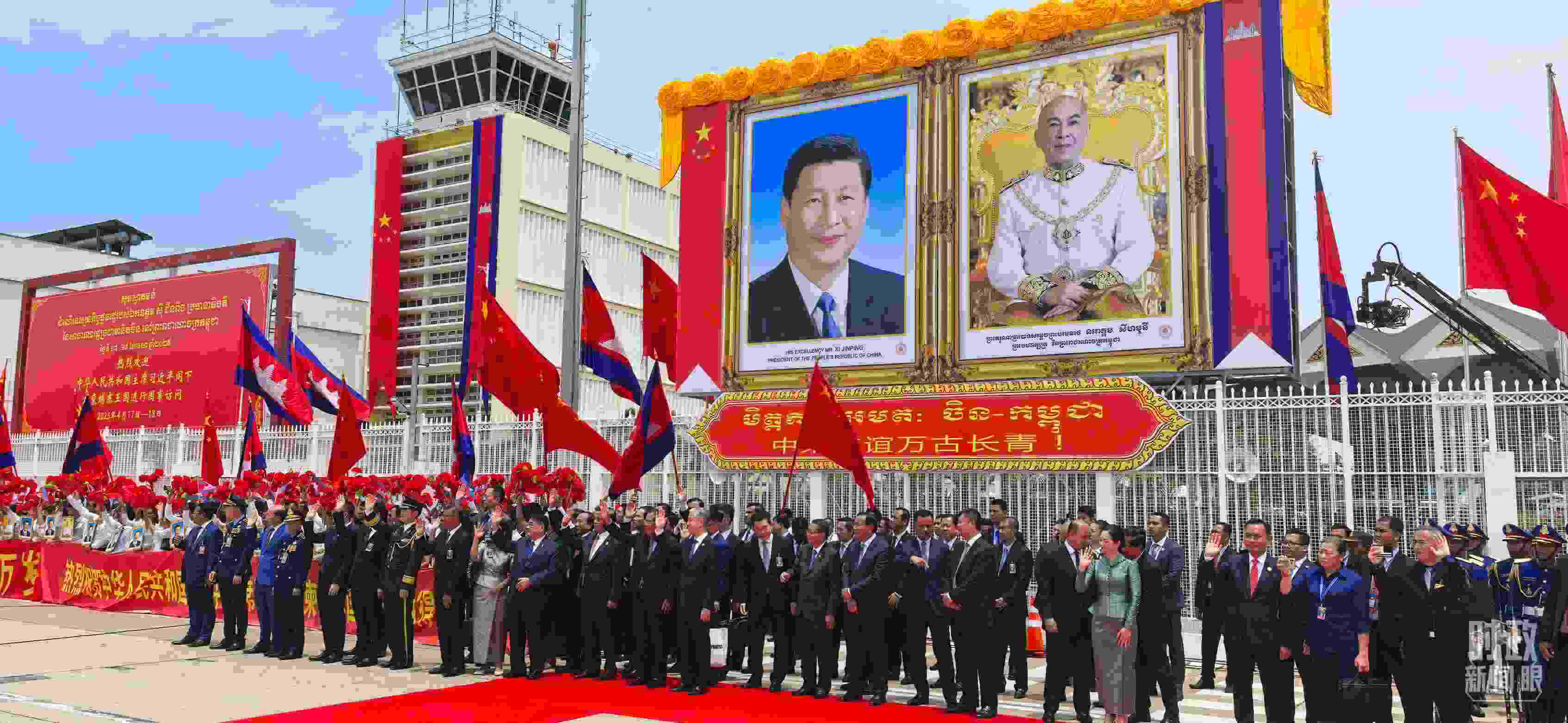 △習(xí)主席離開金邊時,柬埔寨領(lǐng)導(dǎo)人和民眾到機場送行。(總臺央視記者周志國拍攝)