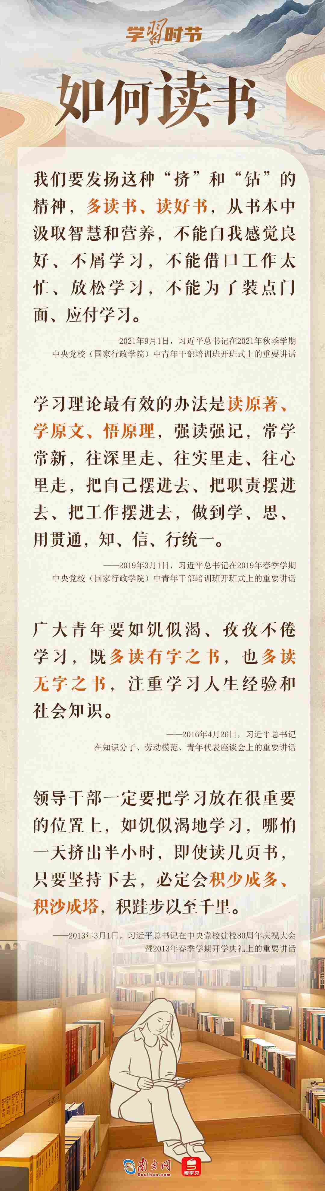 4月23日是第30個(gè)世界讀書日。我們?yōu)楹我x書?應(yīng)如何讀書?讀些什么書?讓我們跟隨總書記的“讀書指南”,一起“愛讀書、讀好書、善讀書”。