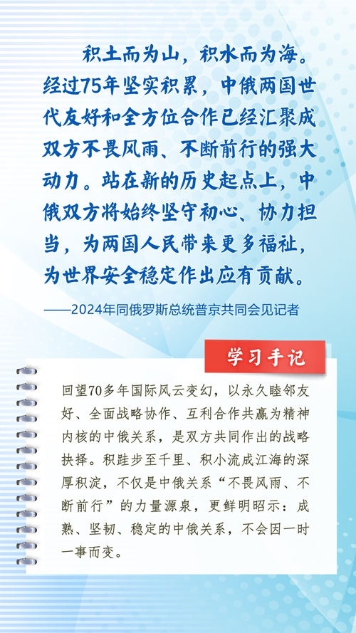 我們一起來(lái)學(xué)習(xí)品讀這些飽含哲思的論述,從中感悟新時(shí)代中俄關(guān)系在復(fù)雜的外部環(huán)境下堅(jiān)毅前行之道,感悟習(xí)近平主席作為大黨大國(guó)領(lǐng)袖、世界級(jí)領(lǐng)袖的時(shí)代擔(dān)當(dāng)與天下情懷。