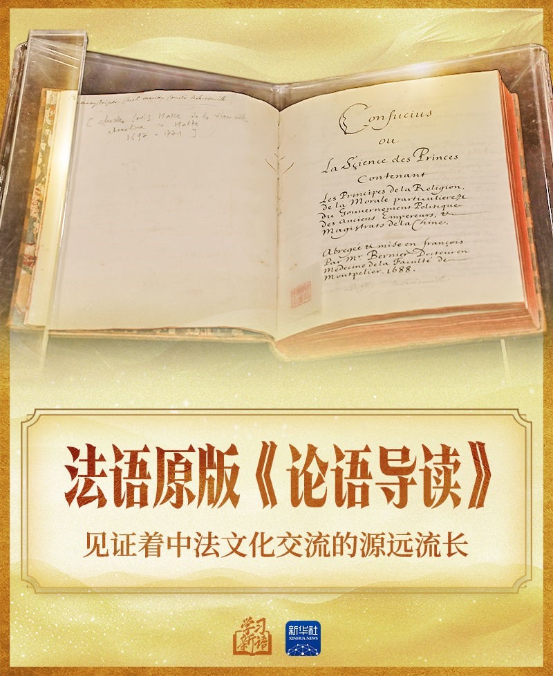 2019年3月,習(xí)近平主席訪法期間收到法國總統(tǒng)馬克龍贈送的珍貴法文古籍《論語導(dǎo)讀》。習(xí)近平主席說:“這個禮物很珍貴,我要把它帶回去收藏在中國國家圖書館?!?/p>