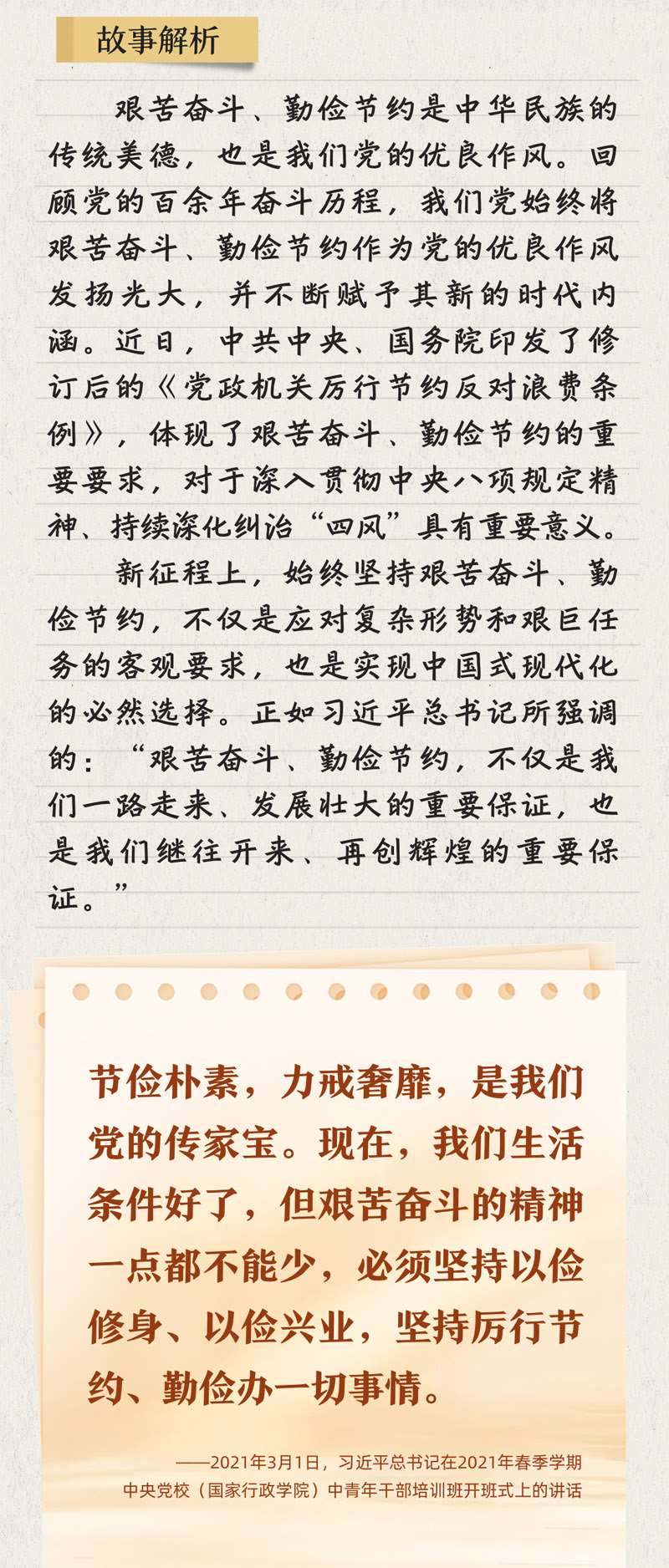 近日,中共中央、國務(wù)院印發(fā)修訂后的《黨政機(jī)關(guān)厲行節(jié)約反對浪費(fèi)條例》,進(jìn)一步弘揚(yáng)艱苦奮斗、勤儉節(jié)約的優(yōu)良作風(fēng)。今天,推出《聽習(xí)近平講作風(fēng)故事⑤丨一根燈芯》,與您一起學(xué)習(xí)毛澤東等老一輩革命家艱苦奮斗、勤儉節(jié)約的故事。