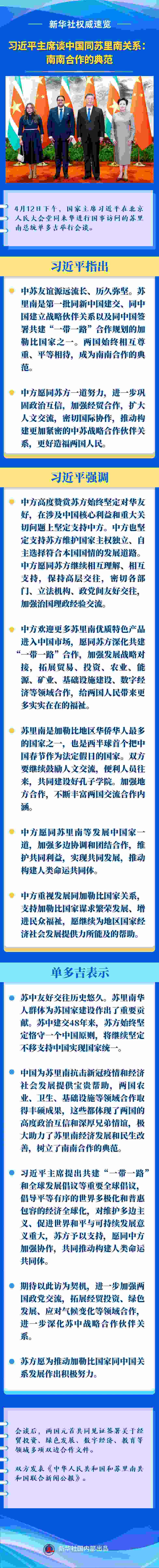 習(xí)近平指出,中國同坦桑尼亞傳統(tǒng)友誼深厚。近年來,兩國關(guān)系高水平發(fā)展,雙方在涉及彼此核心利益和重大關(guān)切問題上相互支持,各領(lǐng)域務(wù)實合作成果豐碩。我高度重視中坦關(guān)系發(fā)展,愿同哈??偨y(tǒng)一道努力,落實好中非合作論壇北京峰會成果,推動中坦全面戰(zhàn)略合作伙伴關(guān)系不斷邁上新臺階,為構(gòu)建新時代全天候中非命運共同體作出更大貢獻(xiàn)。