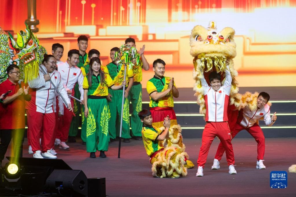 伴隨著恢宏動感的音樂旋律,無數(shù)熒光棒在坐席上不斷變幻出倒計時的數(shù)字和雪花的圖案,酷炫的視頻動畫投射在晶瑩剔透的冰面,一幅科技感十足的冬日畫卷躍然紙上。