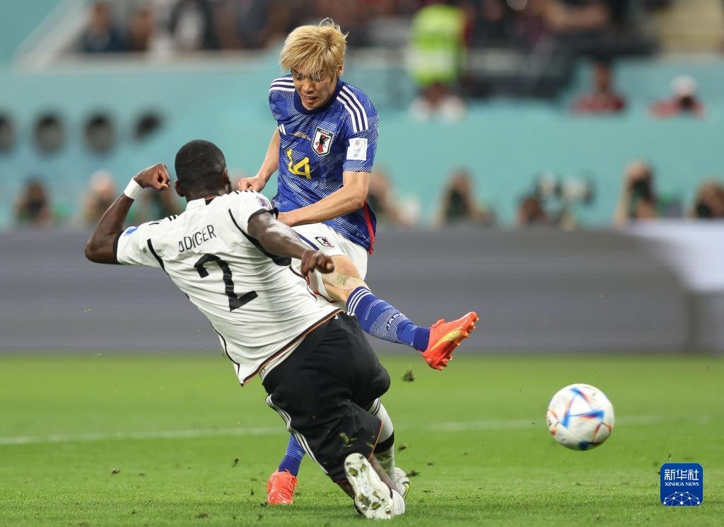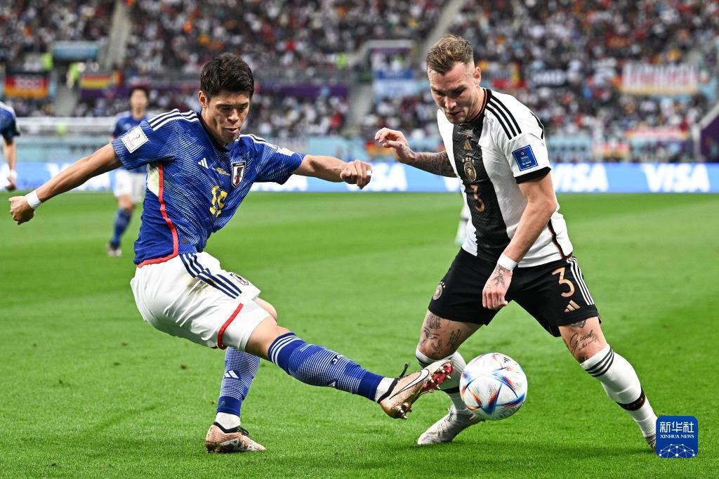 當(dāng)日,在卡塔爾多哈哈里發(fā)國際體育場進(jìn)行的2022卡塔爾世界杯足球賽E組比賽中,日本隊(duì)以2比1戰(zhàn)勝德國隊(duì)。