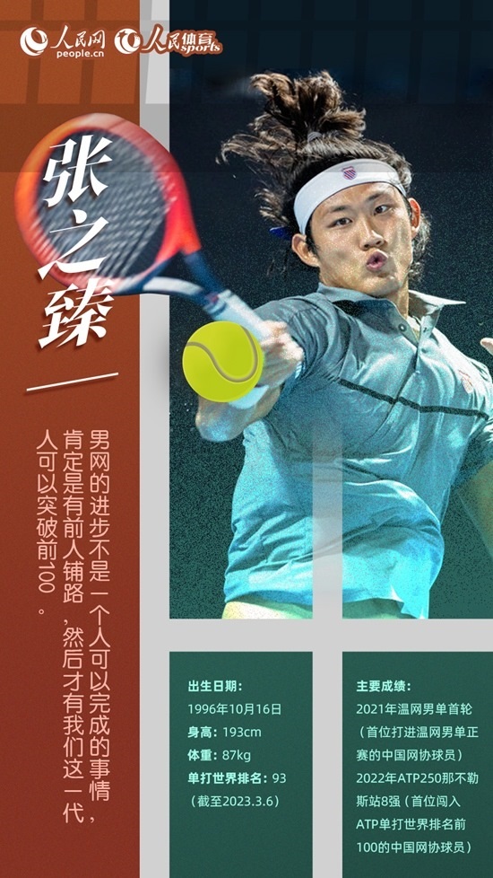 2021賽季,張之臻通過資格賽闖入溫網(wǎng)男單正賽,成為公開賽年代以來首位打進溫網(wǎng)男單正賽的中國網(wǎng)協(xié)球員。2022年,在ATP250那不勒斯站上,從資格賽打起的張之臻最終晉級8強,當(dāng)期世界排名升至第97位,成為首位排名世界前100名的中國網(wǎng)協(xié)男球員。