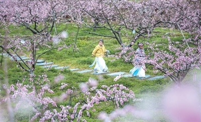 不過,肖田鄉(xiāng)最出彩的還不是朗際古色,而是從小吟村生發(fā)出來的桃紅色。盡管此刻,小吟村東溪村小組的四百畝黃桃基地,樹上掛著的還只是星星點點的花苞,但盤春梅知道,不多時日,漫山遍野便會開出屬于桃紅的磅礴氣勢。