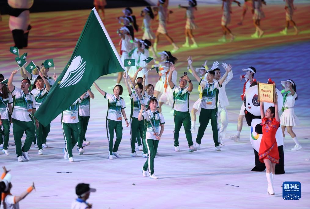 7月28日,中國澳門大學生體育代表團在開幕式上入場。