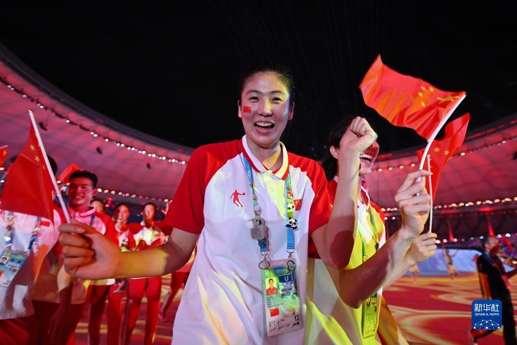 7月28日,中國大學生體育代表團在開幕式上入場。