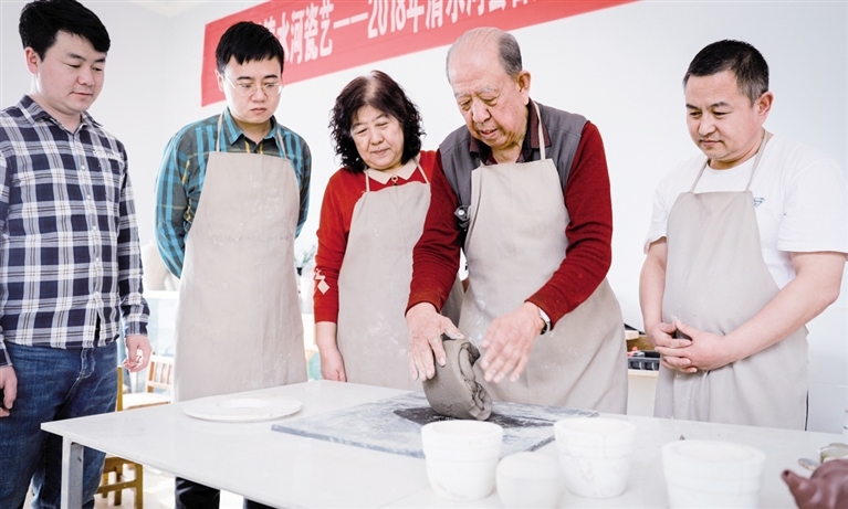 “我還在研究新的技術,也在找徒弟免費授課,雖然不能繼續(xù)開廠售賣很遺憾,但是有不少徒弟都學習這門手藝開了陶吧,讓孩子們體驗清水河瓷藝的制作過程,這也是一種傳承。”耄耋之年的張選帶著記者來到了他位于清水河縣的工作室,放眼望去,一個個模具整齊擺放,桌子上擺滿了半成品,拉坯機、電窯爐等器具。張選的徒弟們準備就緒,等待著師傅傳授新手藝。