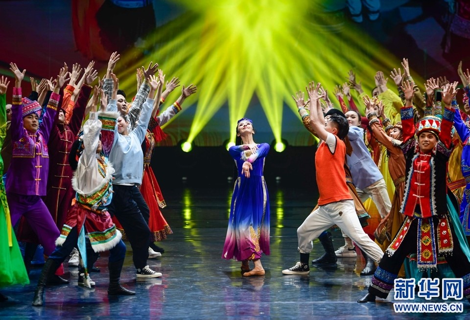 1月12日,演員在2022年內(nèi)蒙古新年舞蹈晚會(huì)中表演舞蹈《各族兒女行進(jìn)在陽光里》。新華網(wǎng)發(fā)(王正攝)