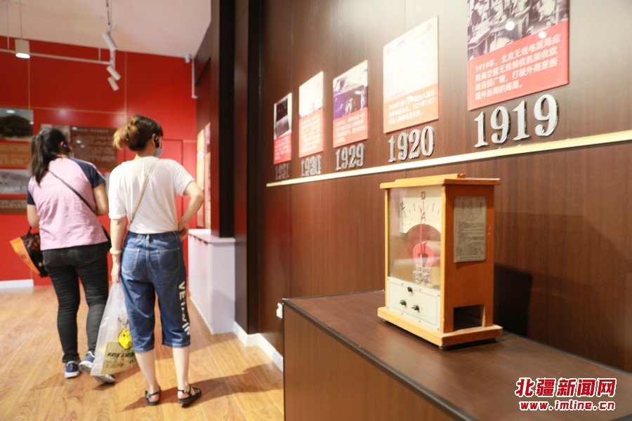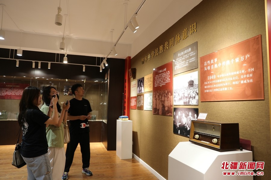 8月17日,游客在內(nèi)蒙古包頭市固陽縣“固陽稒事”美食特產(chǎn)文創(chuàng)街的收音機收藏館參觀。