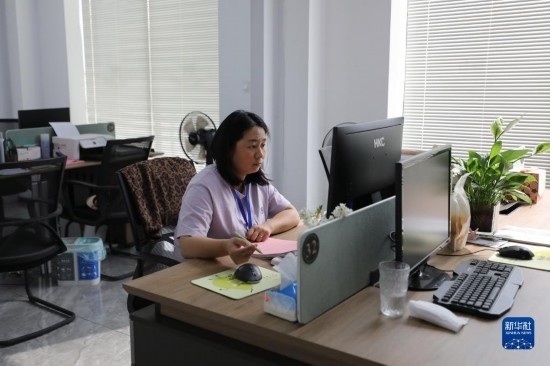 5月23日,在浙江省義烏市李祖村,工作人員在“李祖鄉(xiāng)遇共富工坊”內工作。