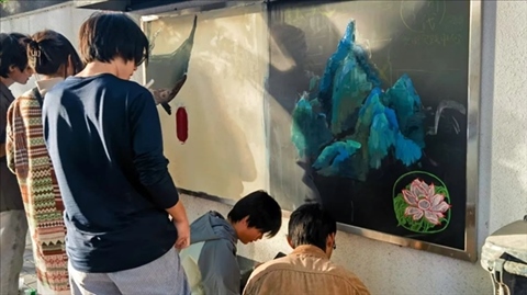 畫像小組的同學(xué)拿起手中畫筆,為團結(jié)湖南北里社區(qū)老黨員、社區(qū)志愿者、騎手社工畫像。大家認(rèn)真描繪“模特”們和藹可親的形象,不時與“模特”聊天互動,聽他們分享自己生活中的精彩故事。除此之外,部分同學(xué)圍繞垃圾分類、廉政教育等主題為社區(qū)繪制黨建板報。通過繪制板報,傳播正能量,為社區(qū)宣傳添一份力。