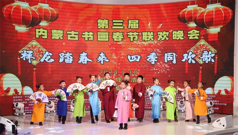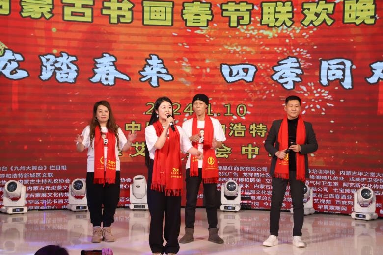 北疆新聞呼和浩特消息 1月10日,以“祥龍?zhí)ご簛?lái) 四季同歡歌”為主題的第三屆內(nèi)蒙古書畫春節(jié)聯(lián)歡晚會(huì)在呼和浩特圓滿舉行。本次晚會(huì)匯聚了近500位內(nèi)蒙古老中青書畫家、演藝明星、政企嘉賓以及熱愛(ài)中國(guó)傳統(tǒng)文化的社會(huì)各界愛(ài)心人士代表,用書畫、歌舞、相聲等豐富多彩的形式,總結(jié)2023,展望2024。