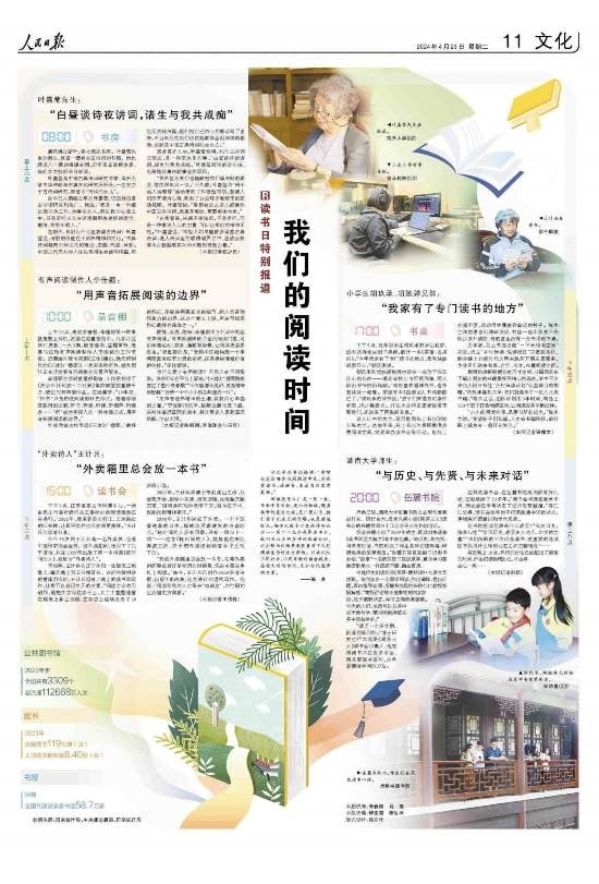 閱讀是什么?是一頁一卷,傳承千年文脈;是出行忙碌,隨身攜帶的星辰大海;是廣袤山鄉(xiāng),指引孩子們成長的燈塔;也是靜謐時光,陪伴無數(shù)個日夜的詩和遠(yuǎn)方……第二十九個世界讀書日,我們關(guān)注多種多樣的閱讀時間,這些鮮活的場景展現(xiàn)著當(dāng)下人們閱讀生活的方方面面。讓我們從不同行業(yè)、不同年齡的讀者視角,感受文明的印記,見證時代進(jìn)步的力量。