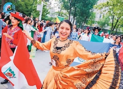 中外學生身著民族服飾載歌載舞,活動參加者現(xiàn)場體驗絲網印刷、水拓工藝……日前,北京語言大學第十九屆世界文化節(jié)游園會舉辦。來自103個國家和地區(qū)的青年及社會各界人士同聚北語,感受文化交融的魅力。