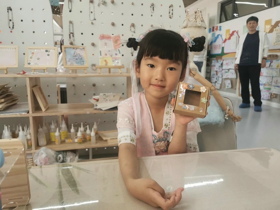 在造紙區(qū),中大班的小朋友造出了一張張花草紙,做出了一盞盞花草燈在制作的過程中體會傳統(tǒng)文化的魅力。
