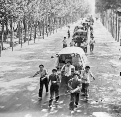 賀貴鑫1970年入團,當時年富力強的他,成了8號板車的主力車手。說是車手,其實更像纖夫。老人從口袋里摸出一張劇團老照片,給記者看。泛黃的黑白照片中,一眾演員拽著繩索、拉著板車,行進在鄉(xiāng)間小路上。身后板車上,裝滿戲服、道具和鍋灶等物品。