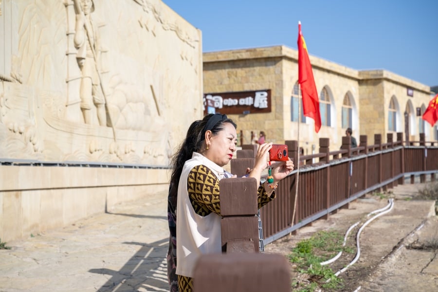 講解員賈吳珍介紹,老牛灣黃河大峽谷旅游區(qū)內(nèi)文物古跡眾多,自然人文景觀皆美,歷史文化底蘊深厚,正在積極努力創(chuàng)建國家5A級旅游景區(qū),讓世界各地游客充分領(lǐng)略老牛灣黃河大峽谷秀美風(fēng)光。