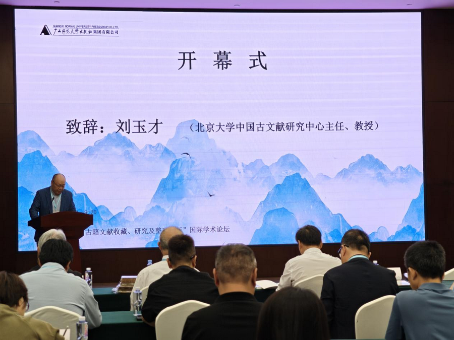 開(kāi)幕式上,北京大學(xué)中國(guó)古文獻(xiàn)研究中心主任、教授劉玉才強(qiáng)調(diào)古籍事業(yè)需多方協(xié)作,注重?cái)?shù)字化加工與創(chuàng)新活用。廣西師范大學(xué)黨委副書(shū)記、教授黃文韜表示,廣西師范大學(xué)將繼續(xù)支持古籍相關(guān)工作,讓古籍文字“活”起來(lái)。