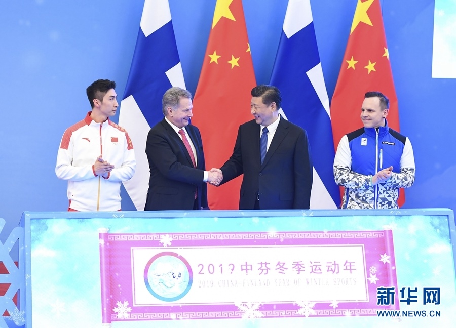 簽字儀式后,習(xí)近平同尼尼斯托共同出席了“2019中芬冬季運(yùn)動(dòng)年”啟動(dòng)儀式。習(xí)近平在致辭中指出,新中國第一次走上奧運(yùn)賽場就是參加1952年芬蘭赫爾辛基奧運(yùn)會(huì),五星紅旗第一次在奧林匹克體育場上升起。中芬冬季運(yùn)動(dòng)發(fā)展契合度高、互補(bǔ)性強(qiáng),合作潛力巨大。相信“2019中芬冬季運(yùn)動(dòng)年”將推動(dòng)兩國體育合作邁上新臺(tái)階,共同為中芬人文交流注入新活力,不斷推動(dòng)中芬面向未來的新型合作伙伴關(guān)系邁上新臺(tái)階。尼尼斯托表示,中國已成為世界體育大國。芬中在體育領(lǐng)域結(jié)緣已久。芬蘭支持中國成功舉辦2022年冬奧會(huì),很高興成為第一個(gè)同中國開啟冬季運(yùn)動(dòng)年的國家,相信這將進(jìn)一步促進(jìn)兩國人民的友誼。中國正在向冬季運(yùn)動(dòng)強(qiáng)國邁進(jìn),芬蘭愿助一臂之力。