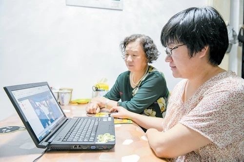 市民們聚在社區(qū)退役軍人服務(wù)站觀看新聞聯(lián)播。