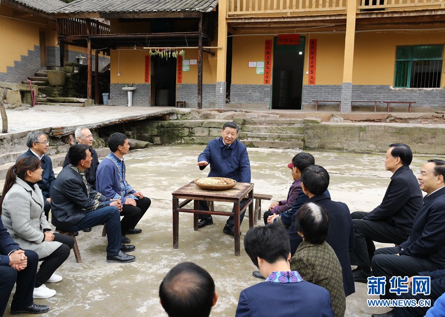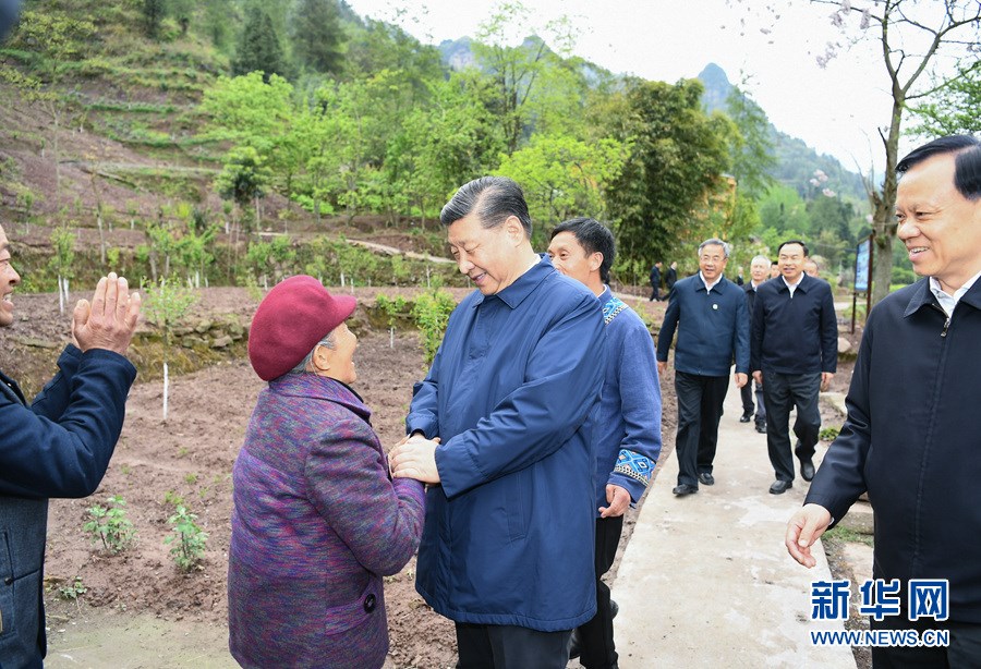 這是4月15日下午,習近平在石柱土家族自治縣中益鄉(xiāng)華溪村看望貧困戶譚登周一家。 新華社記者 謝環(huán)馳 攝