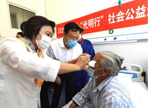 6月14日,自治區(qū)主席、紅十字會(huì)名譽(yù)會(huì)長(zhǎng)、全區(qū)“光明行”社會(huì)公益活動(dòng)組委會(huì)主任委員布小林深入赤峰市翁牛特旗蒙醫(yī)中醫(yī)醫(yī)院為接受白內(nèi)障手術(shù)的患者揭開(kāi)紗布。內(nèi)蒙古日?qǐng)?bào)社融媒體記者 韓卿立 攝