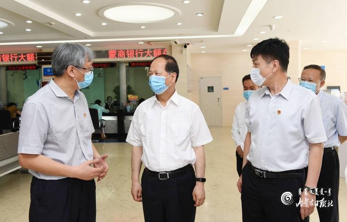 7月13日,自治區(qū)黨委書記、人大常委會(huì)主任石泰峰來到蒙商銀行新城支行調(diào)研。內(nèi)蒙古日報(bào)記者 袁永紅 攝