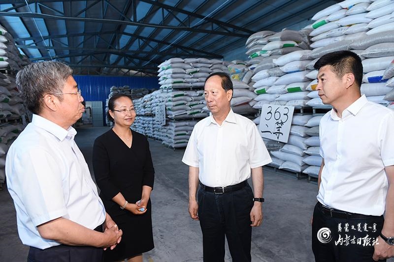 7月14日,自治區(qū)黨委書記、人大常委會(huì)主任石泰峰深入烏蘭察布市四子王旗景欣農(nóng)業(yè)有限公司,了解生產(chǎn)經(jīng)營及帶貧增收情況。內(nèi)蒙古日?qǐng)?bào)社融媒體記者 袁永紅 攝