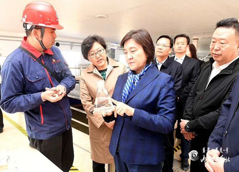 布小林十分關(guān)心沿黃地區(qū)的水資源節(jié)約集約高效利用和生態(tài)保護(hù)建設(shè)。她來到烏海市綠色生態(tài)農(nóng)業(yè)產(chǎn)業(yè)園,走進(jìn)綠農(nóng)永勝農(nóng)民專業(yè)合作社陽光大棚葡萄基地,詳細(xì)了解葡萄種植需水和高效節(jié)水設(shè)施的使用情況;在烏海市啟源供水有限公司,實(shí)地查看凈水工藝流程及針對黃河水特點(diǎn)采取的處理措施。布小林指出,我區(qū)沿黃地區(qū)大多水資源匱乏,生態(tài)保護(hù)和經(jīng)濟(jì)社會發(fā)展面臨水資源短缺的剛性約束。抓好水資源節(jié)約集約高效利用,是推進(jìn)黃河流域生態(tài)保護(hù)和高質(zhì)量發(fā)展的重中之重。要牢固樹立節(jié)水意識,堅(jiān)持以水定城、以水定地、以水定人、以水定產(chǎn),合理規(guī)劃人口、城市和產(chǎn)業(yè)發(fā)展,大力發(fā)展節(jié)水產(chǎn)業(yè)和技術(shù),實(shí)施全社會節(jié)水行動(dòng),推動(dòng)用水方式由粗放向節(jié)約集約轉(zhuǎn)變。要大力發(fā)展循環(huán)經(jīng)濟(jì),結(jié)合技術(shù)改造和產(chǎn)品更新?lián)Q代,組織實(shí)施重大節(jié)水和水循環(huán)利用示范工程,提高水資源重復(fù)利用率。