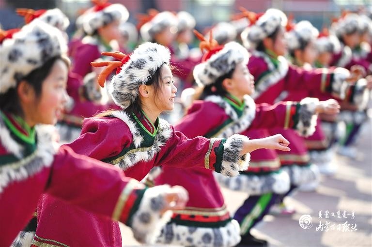 11月26日,呼和浩特市玉泉區(qū)南茶坊小學的學生在大課間跳起具有濃郁民族特色的課間操。據(jù)了解,為了讓孩子們更加了解民族傳統(tǒng)文化,熱愛自己的家鄉(xiāng),同時豐富學生的大課間生活,今年以來,南茶坊小學編排了一套具有濃郁民族特色的課間操,將民族舞蹈與課間操相結合,讓學生既能鍛煉身體,又能感受到家鄉(xiāng)民族文化的魅力。內蒙古日報社融媒體記者 王磊 攝