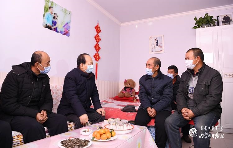 屋外白雪皚皚,屋內(nèi)爐火熊熊。石泰峰首先來到庫倫圖村脫貧戶連縻拴家,與老倆口親切交談,深入了解飲水、住房、健康等生產(chǎn)生活狀況,與他們一起細(xì)算收入賬,詢問他們對幫扶工作的滿意度,鼓勵(lì)他們堅(jiān)定信心,在政策幫扶下勤勞致富。隨后,石泰峰驅(qū)車來到六道溝村,在脫貧戶孟忠忠家,與孟忠忠、胡金柱、王鎖林、韓向林、韓金龍等貧困群眾圍坐在一起嘮起家常,詳細(xì)了解“兩不愁三保障”及飲水安全、產(chǎn)業(yè)發(fā)展等情況。得知他們雖然都是因病、因殘致貧,但生產(chǎn)生活都有保障,而且不等不靠、自我發(fā)展的心勁兒很足,石泰峰說,脫貧路上一個(gè)都不能少、一戶都不能落,今年是脫貧攻堅(jiān)戰(zhàn)最后一年,也是全面建成小康社會(huì)收官之年,看到你們不但脫了貧,而且信心滿滿,很有志氣和骨氣,我很放心。幸福是奮斗出來的,希望大家在政策幫扶下繼續(xù)奮斗,共同努力脫貧致富過上好日子。石泰峰要求當(dāng)?shù)馗刹恳虻刂埔?、精?zhǔn)施策,接續(xù)推進(jìn)全面脫貧與鄉(xiāng)村振興有效銜接。