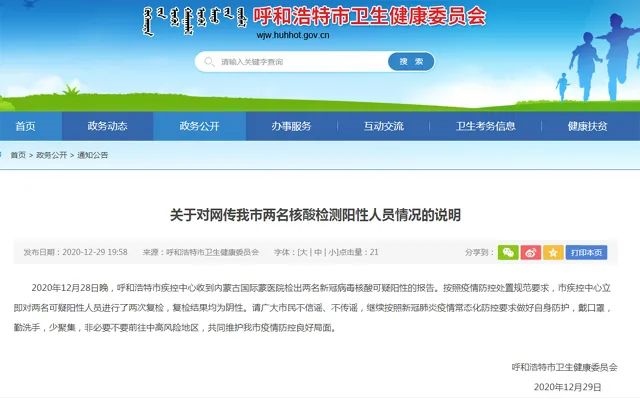 呼和浩特市兩人核酸檢測(cè)呈陽(yáng)性?官方回應(yīng)來(lái)了!